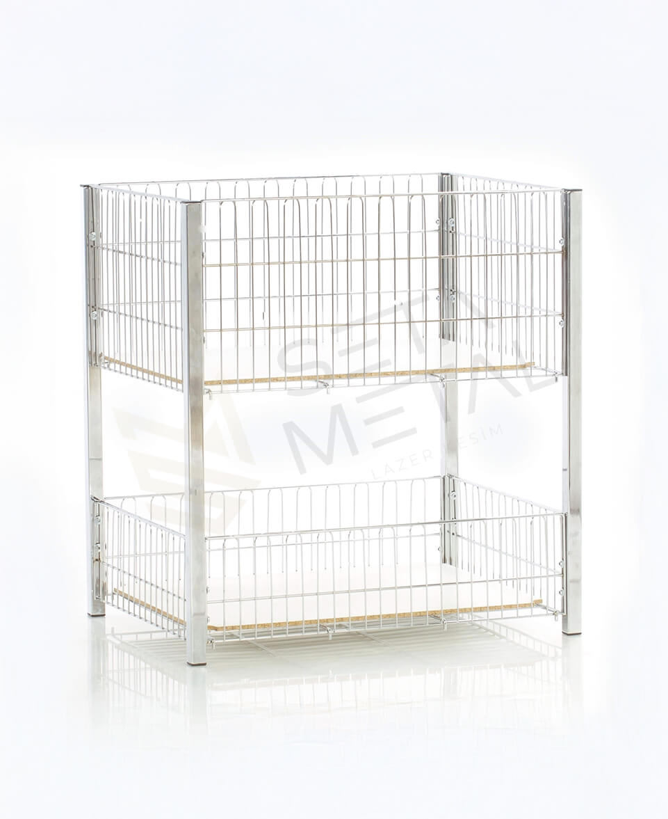 Seta Metal As a platform that allows you to display your products in a stylish and useful way. Two Tier Promotional Basket We manufacture. Made of durable metal material, these baskets allow you to present your promotional products in an organized and easily accessible manner. Thanks to its two-layer design, it saves space while also offering the opportunity to increase product variety.